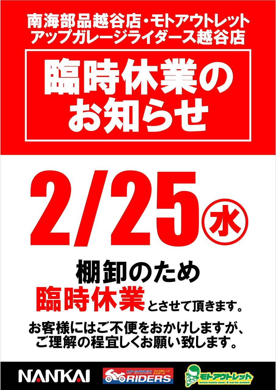 棚卸し業務の為、2/25(水曜日)は終日臨時休業とさせて頂きます。