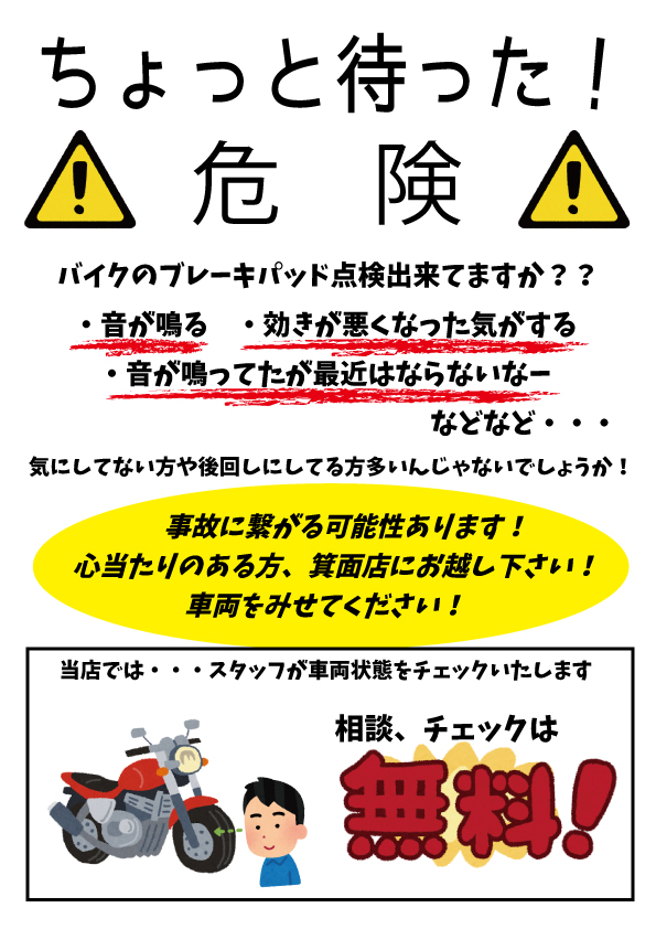 【南海部品箕面店限定企画】ブレーキパッド交換応援キャンペーン 第一弾