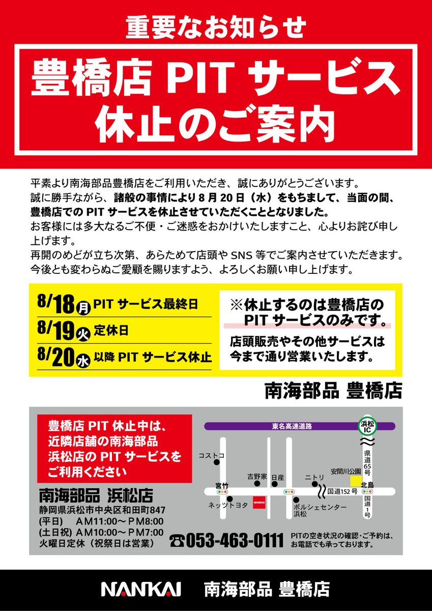 平素より南海部品豊橋店をご利用いただき、誠にありがとうございます。