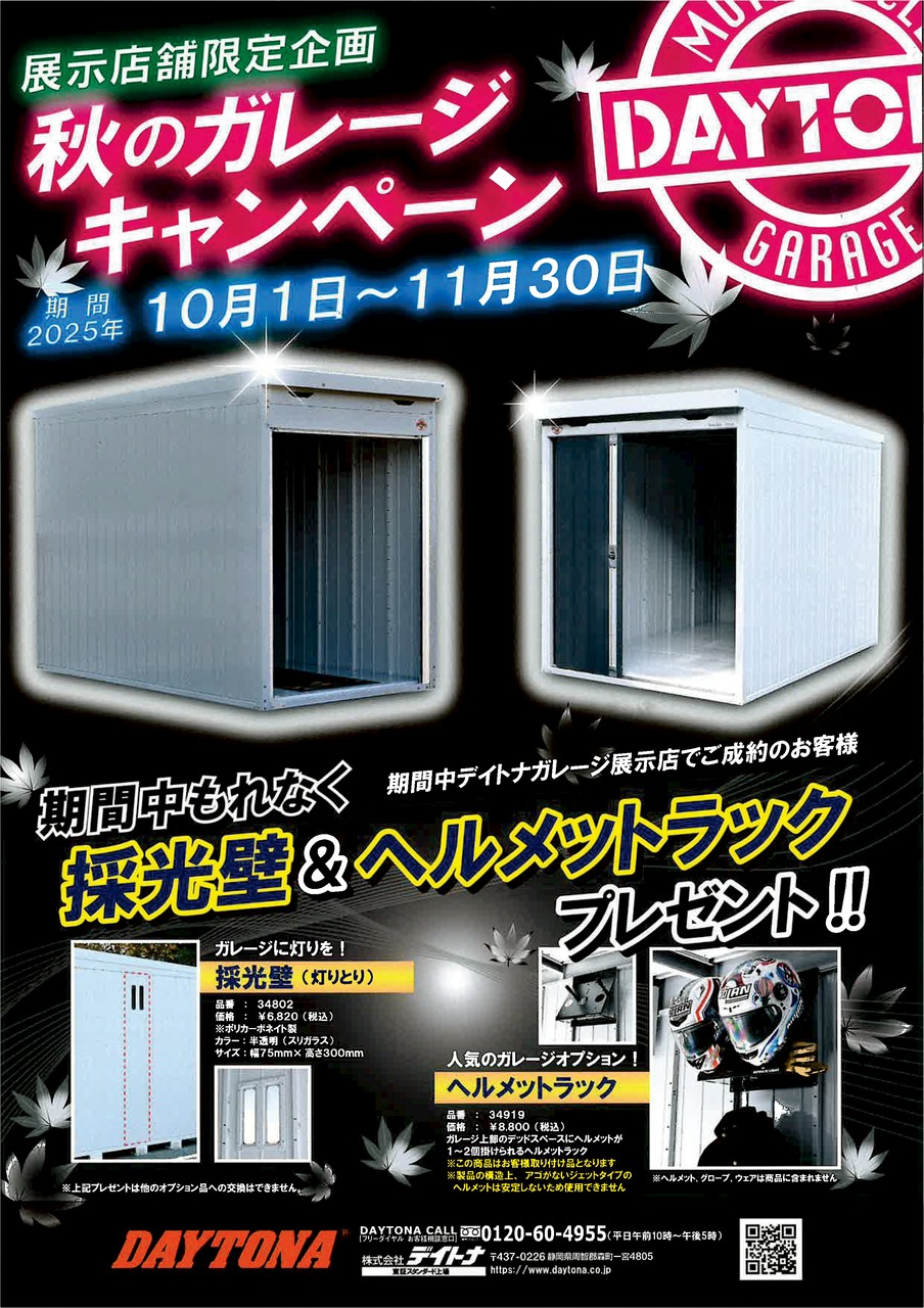 ただいまデイトナ・モーターサイクルガレージがキャンペーン中!