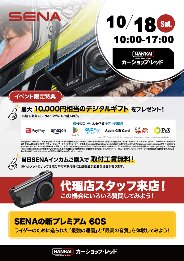 最新のMESHインカムを実際にご体感いただけるほか、 当日ご購入の方には取付工賃が無料となる特典をご用意。