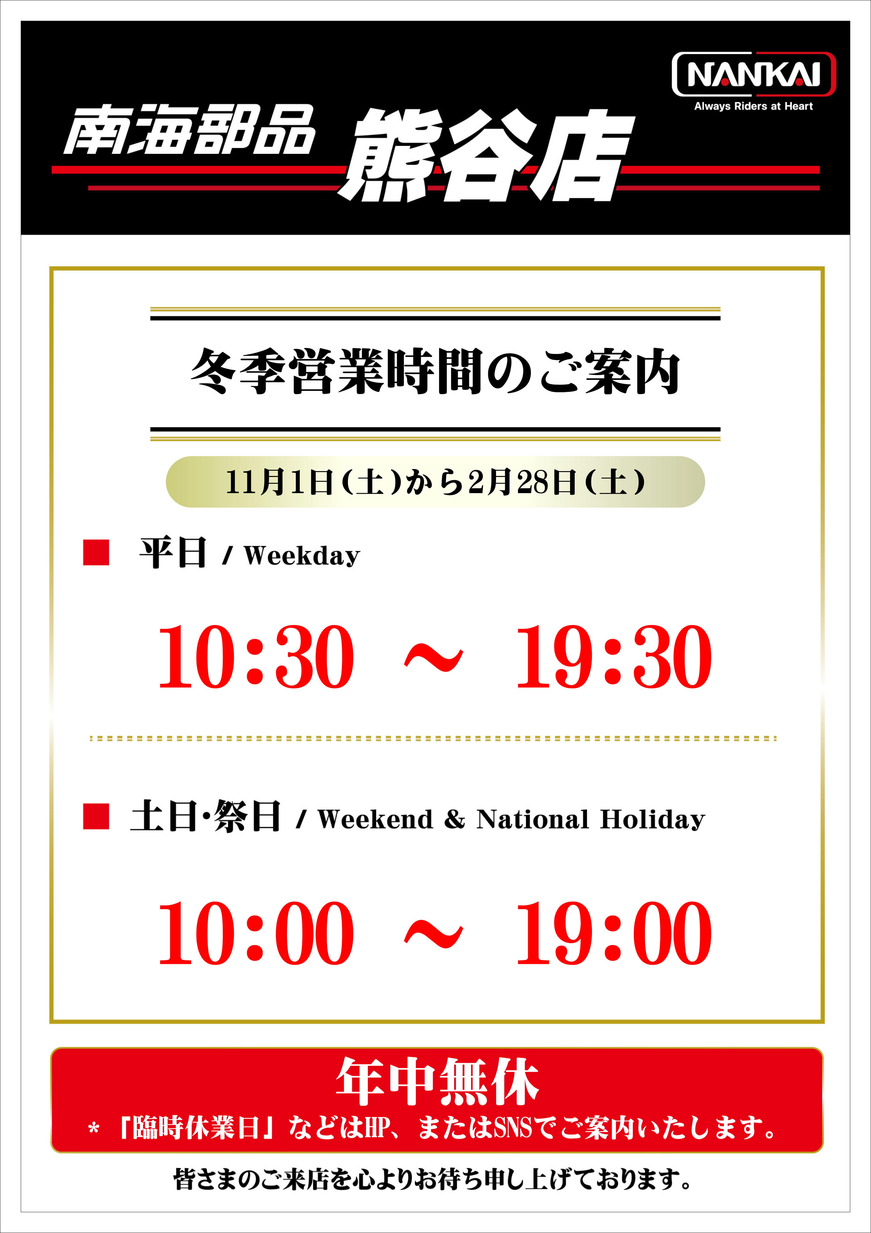 平素より南海部品熊谷店をご利用いただき、誠にありがとうございます。