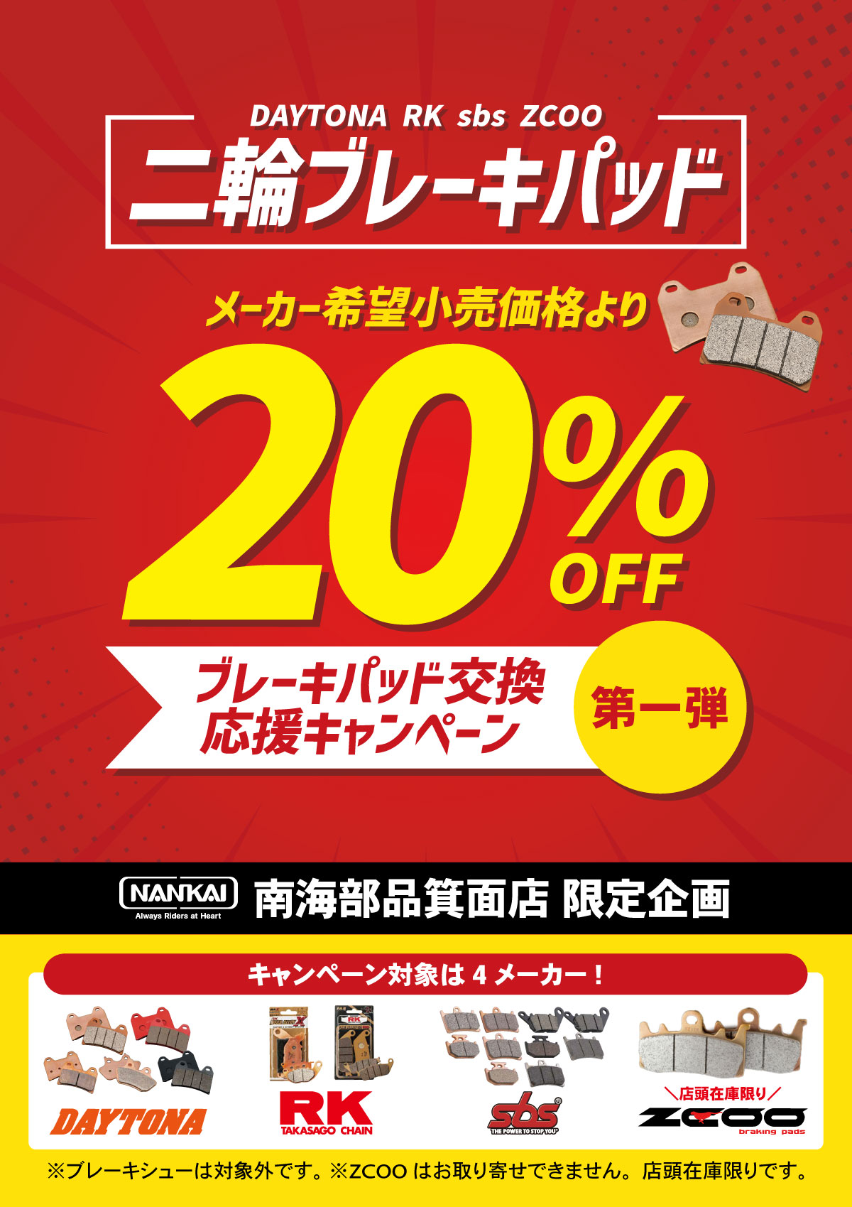 【南海部品箕面店限定企画】ブレーキパッド交換応援キャンペーン 第一弾