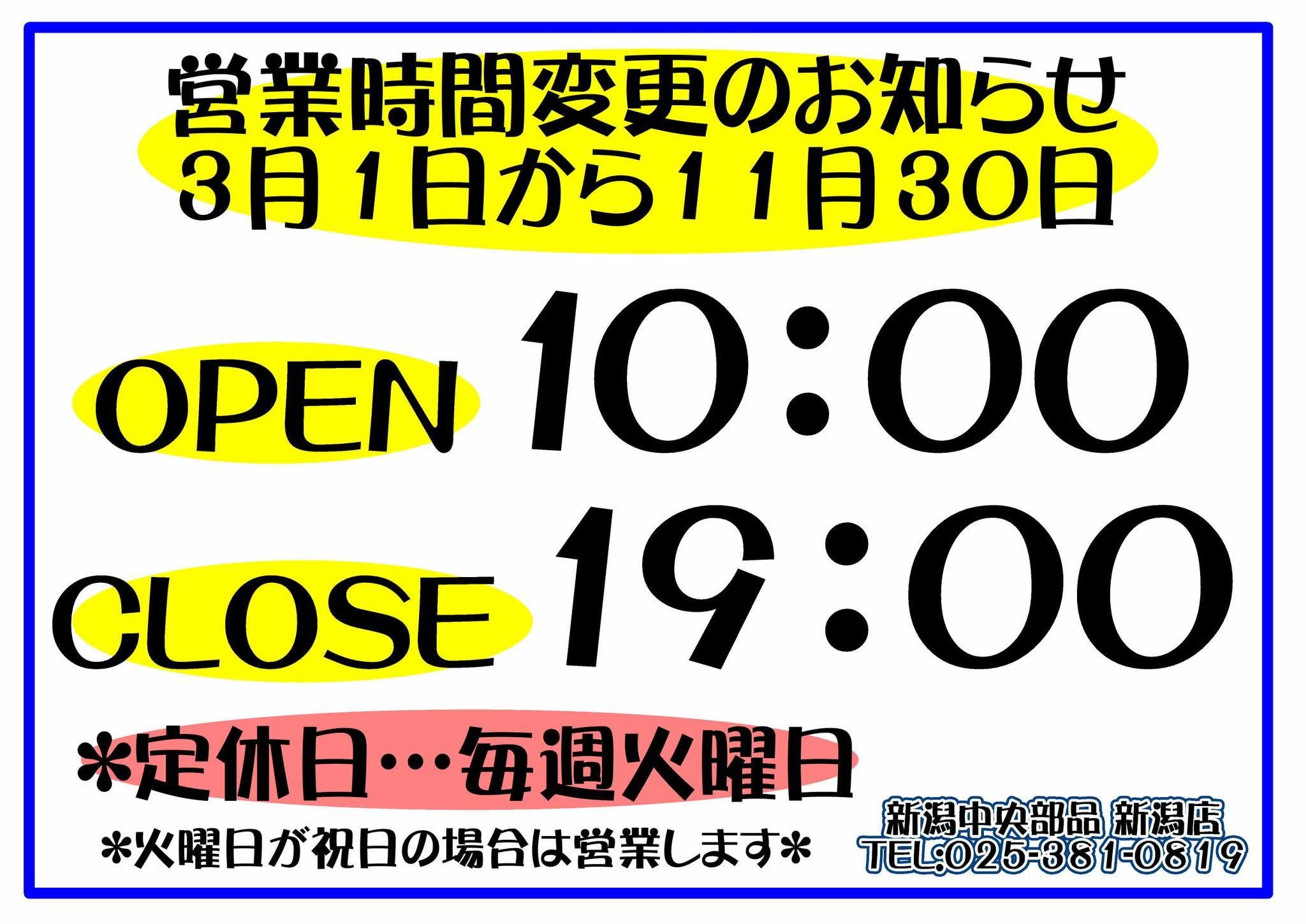 3月から11月までの営業時間(閉店時間)が変更となります。