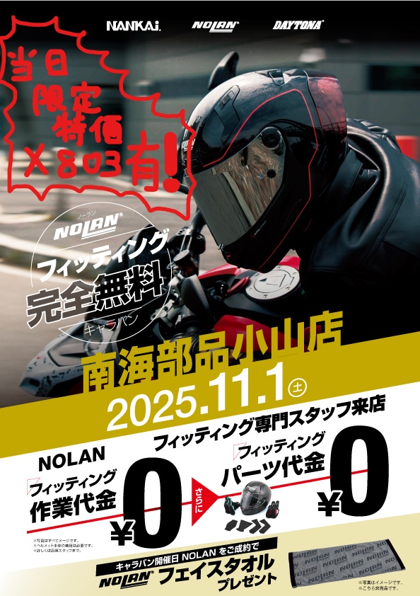 1.フィッティング無料でご対応! 2.NOLANタオルプレゼント!!