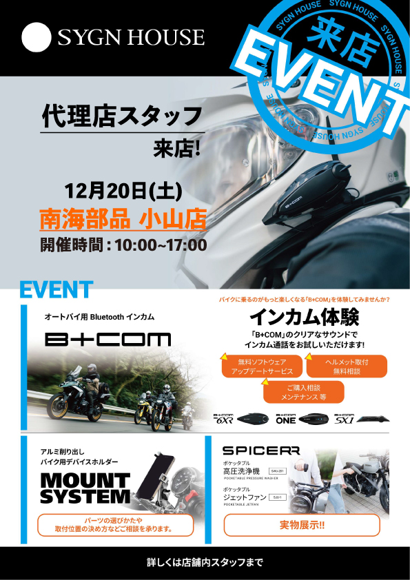12/20はサインハウス&南海部品本社スタッフ来店イベント!