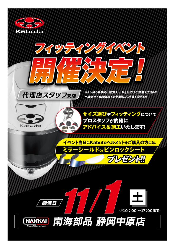 11月1日(土) Kabuto 代理店スタッフによるフィティングイベントを開催します!