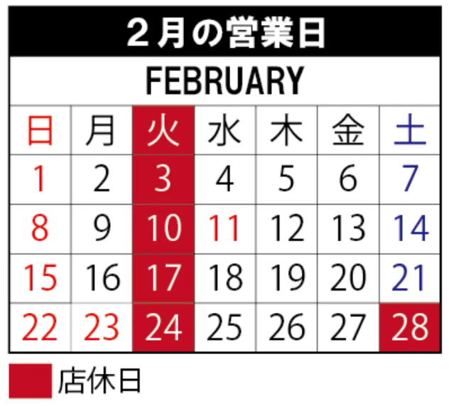 2026年2月の営業日と定休日のお知らせ