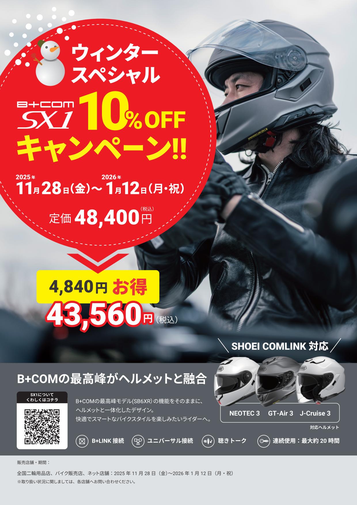 B+COMの最高峰モデルのインカム『SB6XR』の機能を備え、 ヘルメットと一体化したデザインで人気の『SX1』をお買い得な価格でご提供致します。 対象ヘルメットは、SHOEIの「NEOTEC3」「GT-AIR3」「J-Cruise3」です。