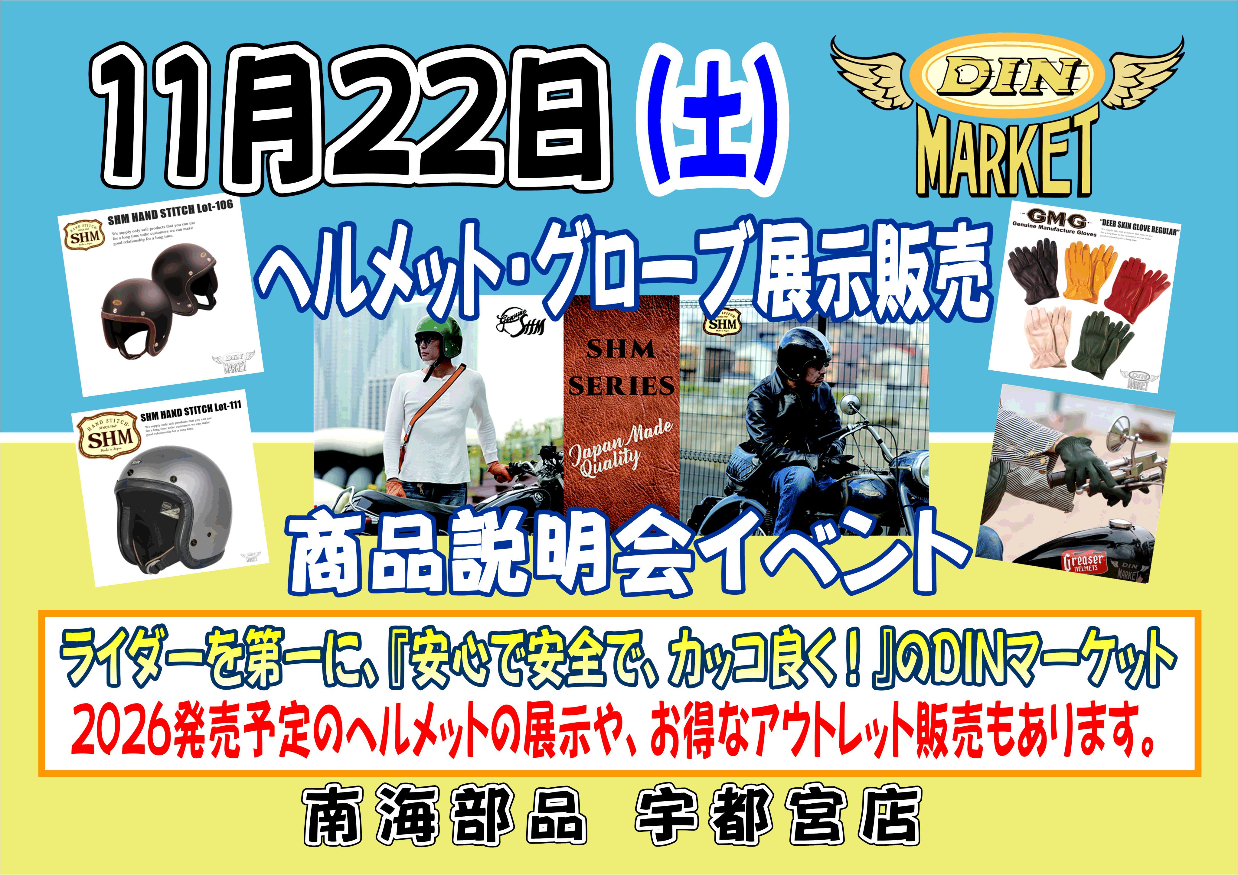 11月22日(土) 「DIN MARKET」ヘルメット・グローブ展示販売 商品説明会イベント開催!!